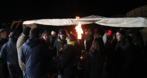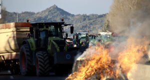 Els pagesos aguanten la pluja en el tall de l’autopista a...
