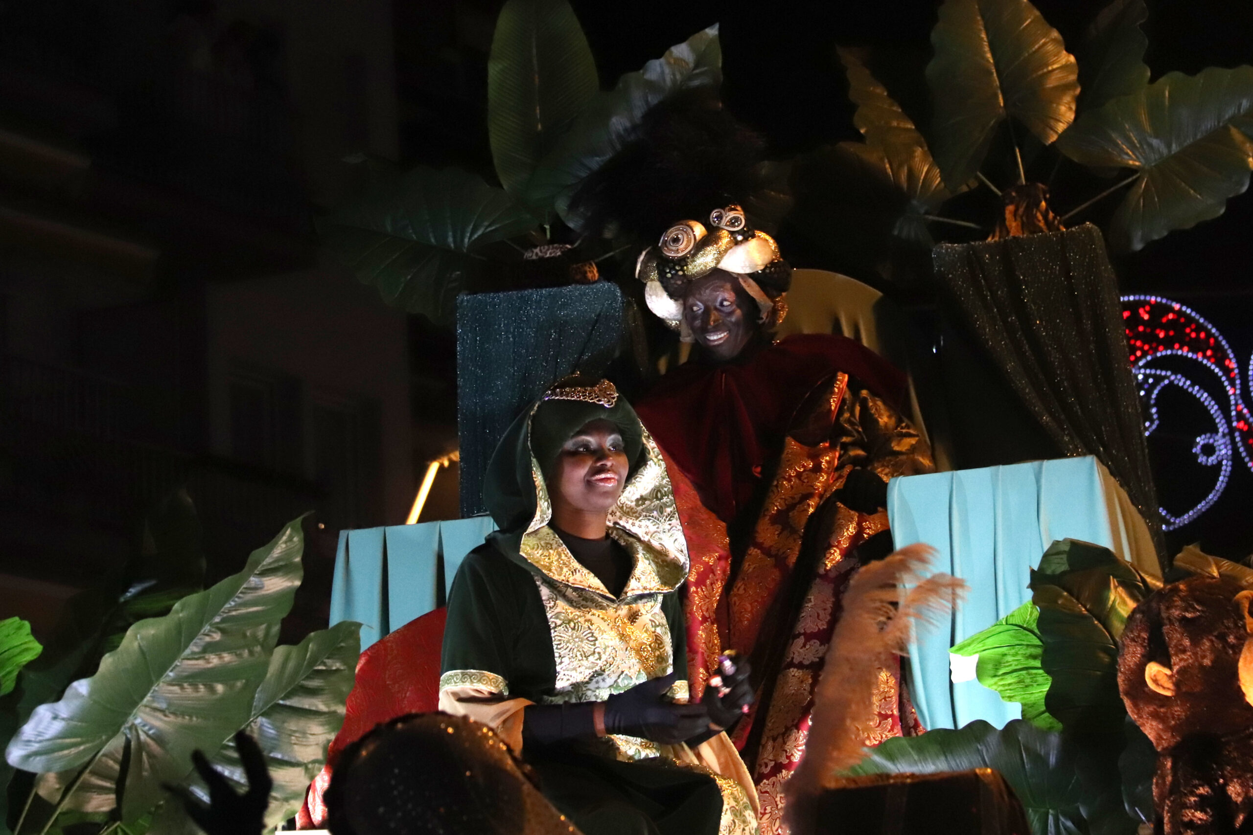 Una vegada a terra, l’alcalde els ha donat la benvinguda i els ha acompanyat fins a les carrosses que ja esperaven per sortir. Enguany la cavalcada comptava amb una trentena d’elements, d’entre ells vuit carrosses. Tots ells han recorregut el passeig marítim, el carrer Ample i han baixat per la rambla de Joaquim Ruyra. Allà, Ses Majestats han baixat de les carrosses per completar el recorregut fins al passeig de Dins a peu.