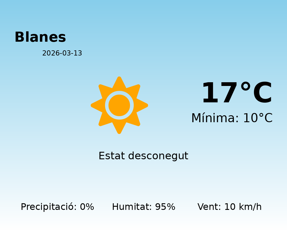 En resum, es preveu un dia força estable a Blanes, amb temperatures agradables i absència de pluges. Ideal per a activitats a l’aire lliure, sempre que es tingui en compte el nivell d’humitat.
