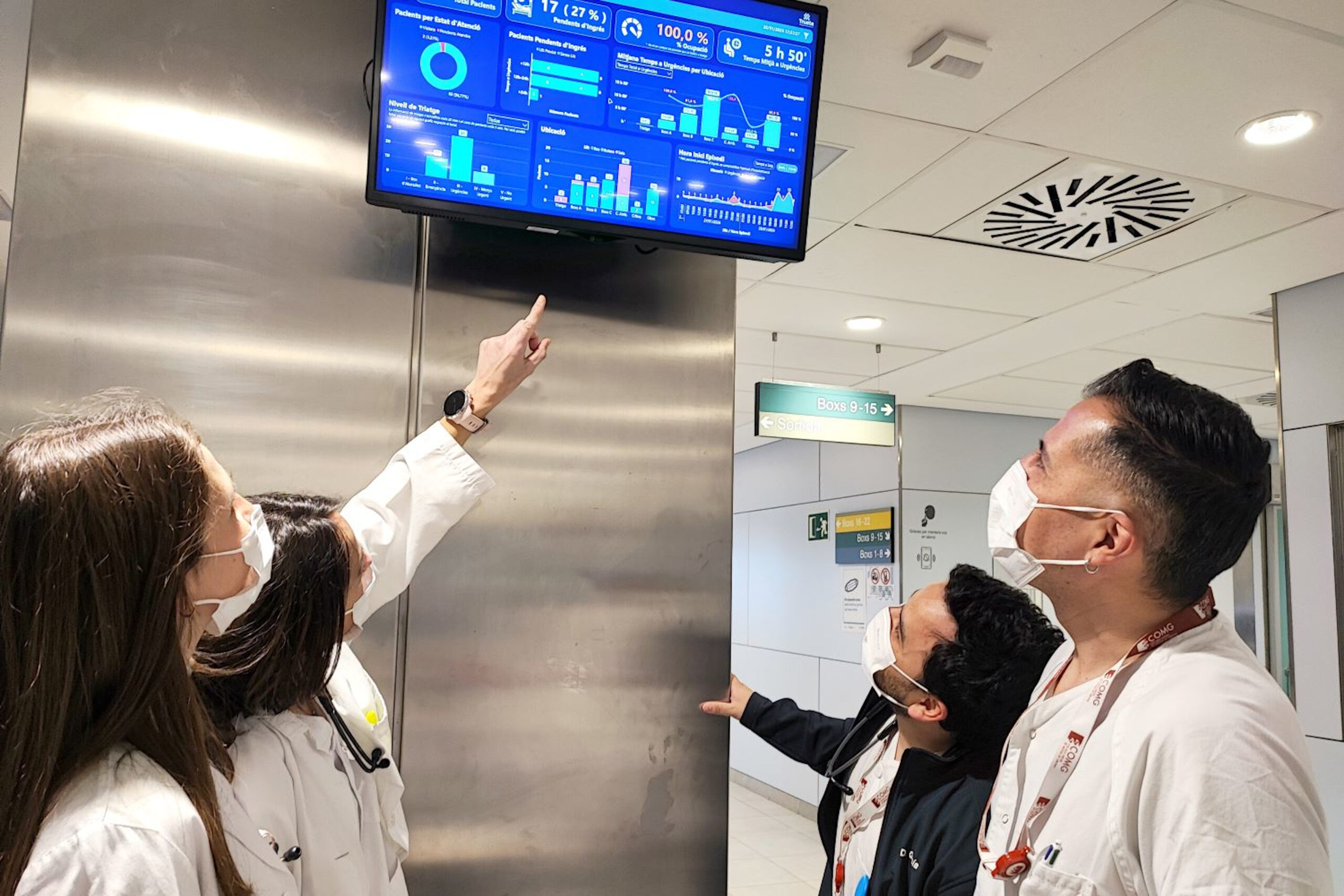 Els professionals consulten les dades que els ofereix el panell de control des de pantalles fixes, que s’han ubicat en espais de treball de l’àrea. Aquesta informació també és accessible des de dispositius mòbils i des de l’escriptori de treball dels professionals, fet que facilita la consulta des de qualsevol punt del servei i millora la coordinació.