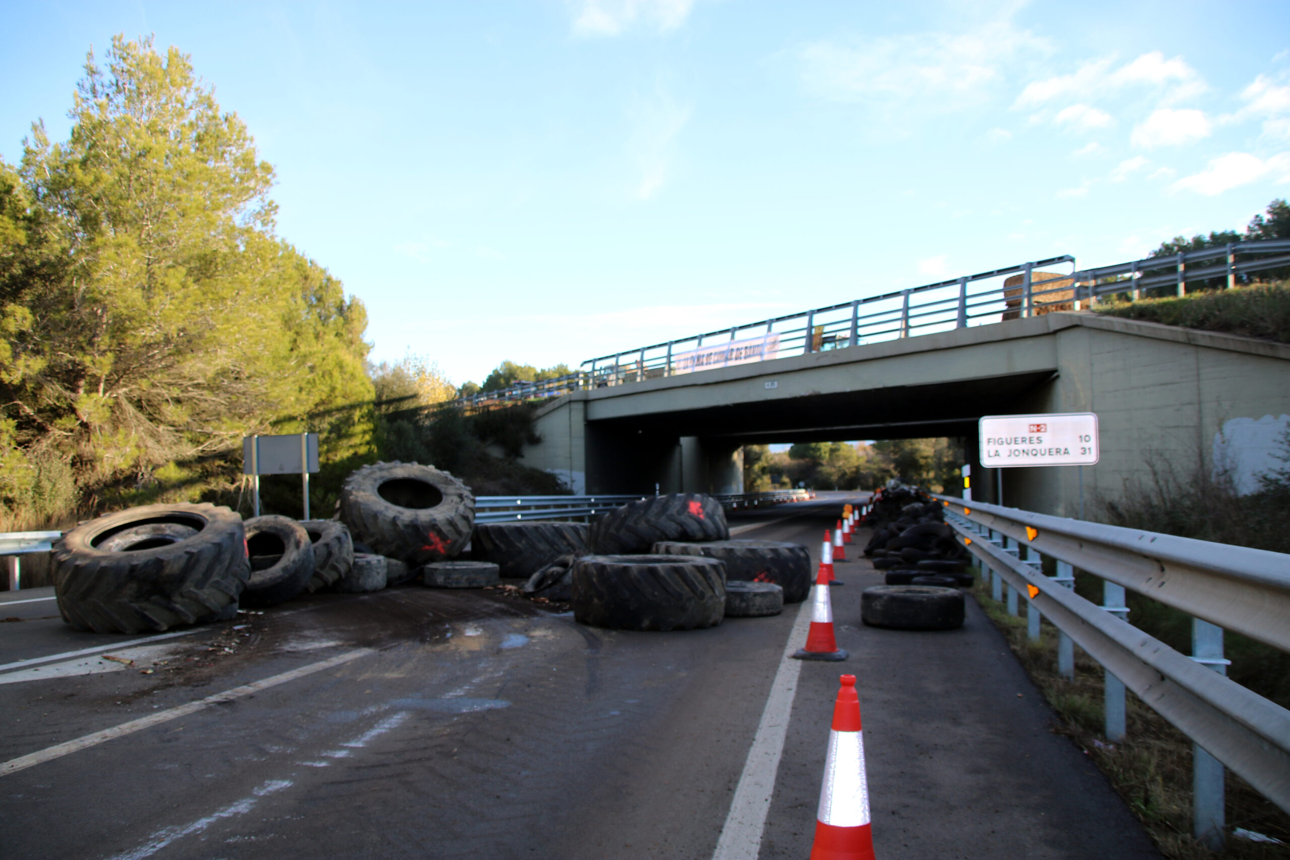 La protesta a Pontós (Alt Empordà) va començar la matinada de dimecres a dijous. Els pagesos van tallar l’AP-7, una de les principals vies de connexió amb França i per on cada dia passen milers de camions. En un primer moment, van mantenir oberta l’N-II pels cotxes, tot i que no deixaven passar els camions, fins aquest matí, que també han bloquejat aquesta via.