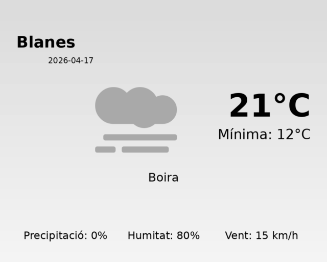 En resum, el dia d’avui s’espera que sigui majoritàriament tranquil i agradable, perfecte per fer una passejada pel passeig marítim o simplement gaudir d’una tarda relaxant a l’aire lliure. Aprofiteu aquestes condicions, ja que la primavera a vegades ens sorprèn amb canvis sobtats en el clima. Gaudiu de la vostra jornada a Blanes!