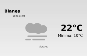 Avui, 9 d’abril de 2026, Blanes gaudirà d’un dia majoritàriament assolellat, amb unes condicions meteorològiques molt favorables per a les activitats a l’aire lliure. Les temperatures es mouran entre uns agradables 10 °C de mínima i 22 °C de màxima.