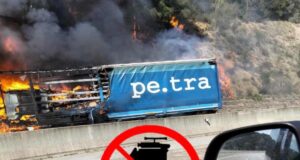 Un camió en flames col·lapsa la C-25 a Santa Coloma de...