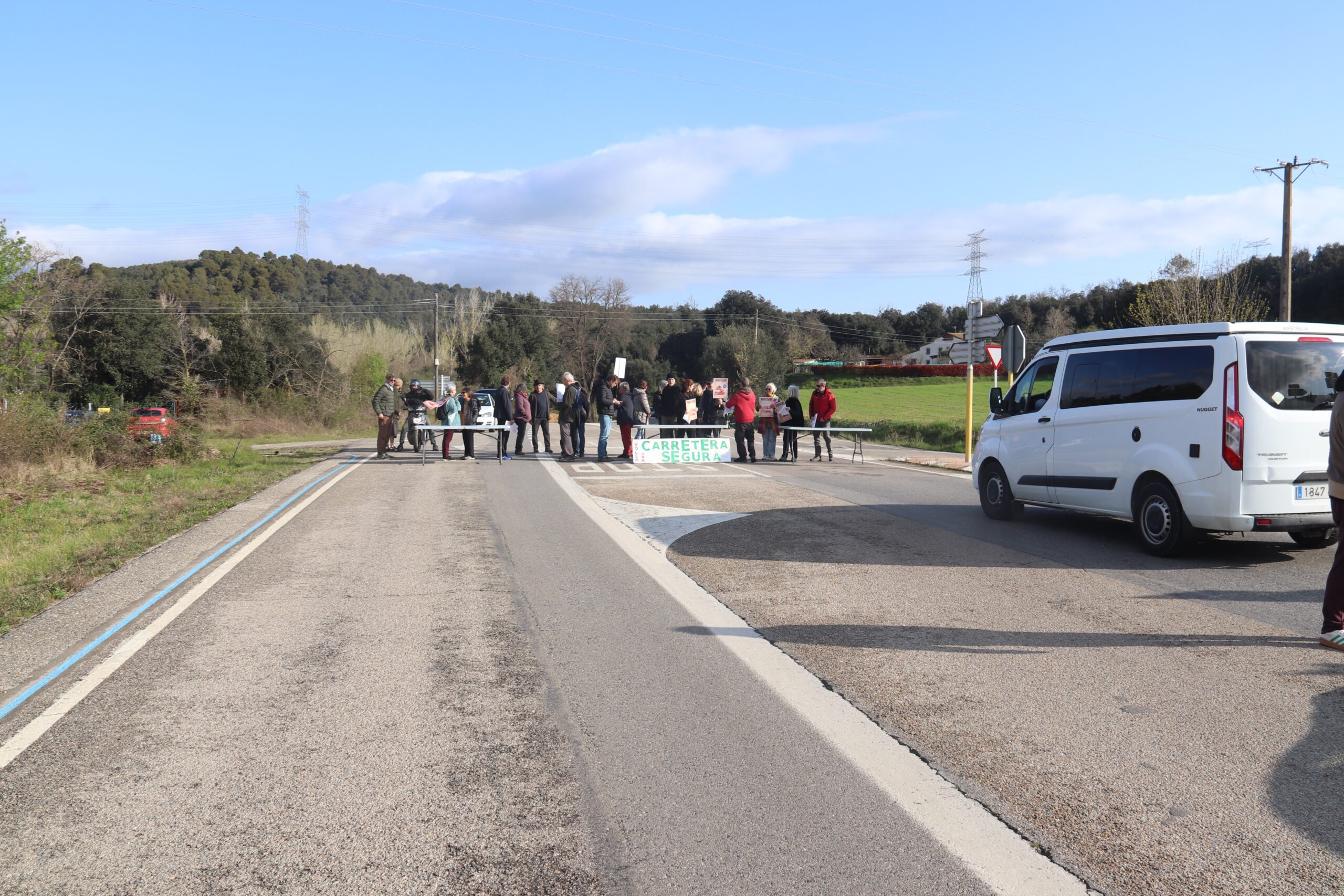 ACN Canet d’Adri – Una trentena de veïns de la Vall de la Llémena han tallat la carretera GI-531 entre Sant Gregori i Llorà (Gironès) aquest dilluns al matí per protestar en contra del projecte d’ampliació de la carretera i el pas de camions de 16 metres en horari escolar. Els veïns han portat pancartes i cartells reivindicatius en el tall de circulació que ha durat uns minuts i han aprofitat per entregar un manifest per escrit als conductors que han quedat aturats. A més, la plataforma Per una Carretera Segura ha retret que l’Ajuntament de Sant Aniol de Finestres (Garrotxa) hagi abandonat la mancomunitat de la Llémena per desvincular-se dels acords en matèria de restricció de camions.